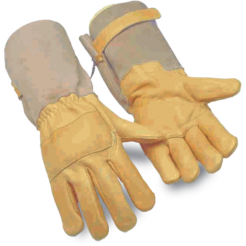 Rukavice s dlaní a hřbetem z nejkvalitnější lícové usně s vodoodpudivou a ohnivzdornou úpravou. Výztuž z lícové kůže s vodoodpudivou úpravou na zádech. 16 cm dlouhá bezpečnostní manžeta ze štípenky s vodoodpudivou úpravou. Šité kevlarovou® nití. 15 cm Kevlar® manžeta. Kevlar® podšívka na dlani. Nastavení lepícího pásku na bezpečnostní manžetě.