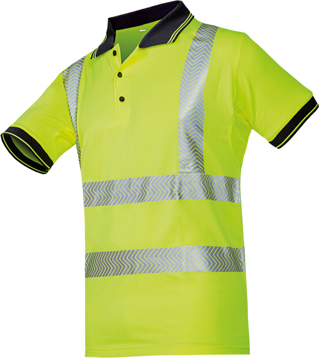 hi-vis polokošile se speciálními panely z materiálu mesh v podpaží; velmi nízká váha; nažehlené segmentové reflexní pruhy; anti-bakteriální úprava materiálu