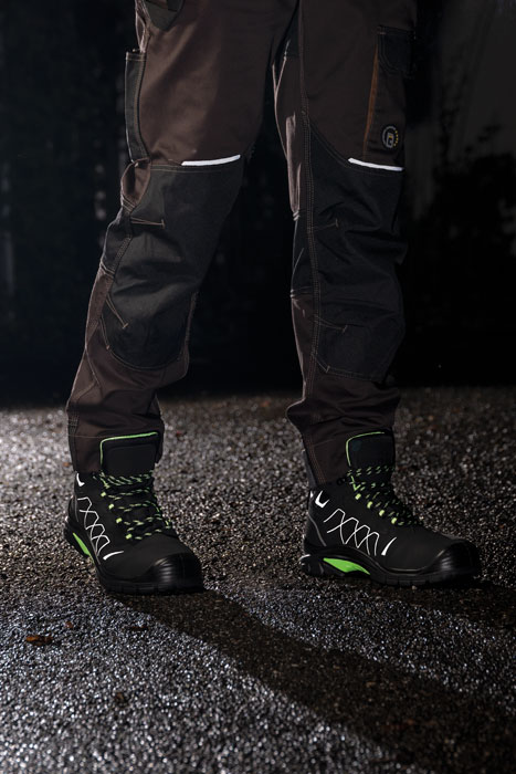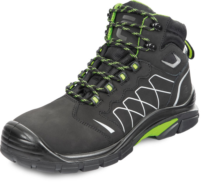 Moderní bezpečnostní kotníková obuv s kompozitní stélkou proti propichu a kompozitní tužinkou ve špici, která chrání před stlačením silou do 15 kN nebo pádem břemena o váze do 20 kg z výšky 1 m. Antistatická podešev vyrobena z kombinaci polyuretanu a velice odolné gumy garantuje nejenom komfort, ale i bezpečí díky protiskluzným vlastnostem podrážky, která je navíc rezistentní olejům a oděru. Svršek obuvi je vyrobený z přírodní kůže „NUBUCK“ a vnitřní podšívka z prodyšného polyesteru. Reflexní prvky garantuji zvýšenou viditelnost uživatele. Tento model je vybaveny komfortní vnitřní stélkou, která díky gelové patě ještě lepe tlumí nárazy a přináší maximální pocit pohodli během práce. Tyhle boty vypadají jako sportovní obuv, ale při tom dokonale ochrání vaší nohy. V každé krabici druhy par tkaniček navíc.