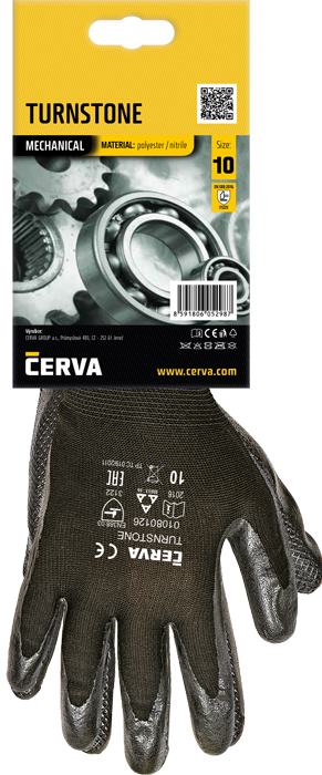 Pletené bezešvé polyesterové rukavice se speciálním protiskluzným nitrilovým povrstvením v dlani a na prstech a pružným nápletem.