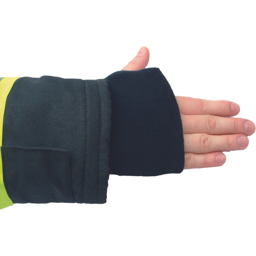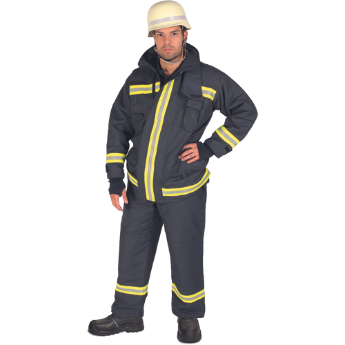 antistatické ohnivzdorné ochranné kalhoty, flexibilní v rozkroku, kavlarová výztuha kolen, reflexní pásky pro větší viditelnost v zakouřeném prostředí.