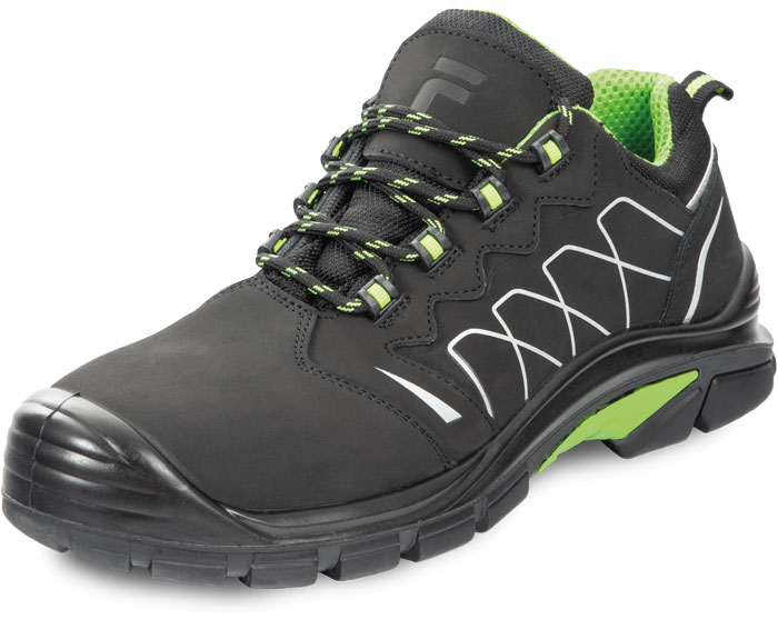 Moderní bezpečnostní polobotka s kompozitní stélkou proti propichu a kompozitní tužinkou ve špici, která chrání před stlačením silou do 15 kN nebo pádem břemena o váze do 20 kg z výšky 1 m. Antistatická podešev vyrobena z kombinaci polyuretanu a velice odolné gumy garantuje nejenom komfort, ale i bezpečí díky protiskluzným vlastnostem podrážky, která je navíc rezistentní olejům a oděru. Svršek obuvi je vyrobený z přírodní kůže „NUBUCK“ a vnitřní podšívka z prodyšného polyesteru. Reflexní prvky garantuji zvýšenou viditelnost uživatele. Tento model je vybaveny komfortní vnitřní stélkou, která díky gelové patě ještě lepe tlumí nárazy a přináší maximální pocit pohodli během práce. Tyhle boty vypadají jako sportovní obuv, ale při tom dokonale ochrání vaší nohy. V každé krabici druhy par tkaniček navíc.
