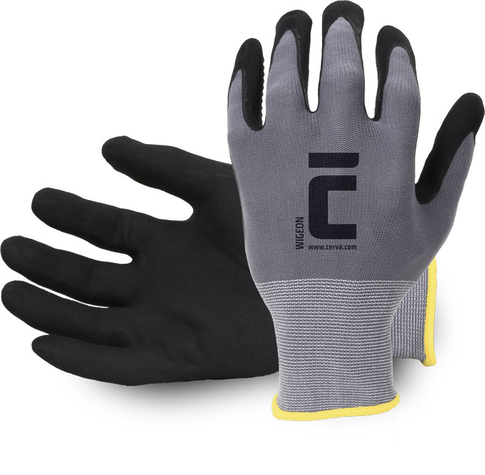 Bezešvé pletené rukavice, materiál nylon/elastan s nánosem nitrilu na dlani a prstech.