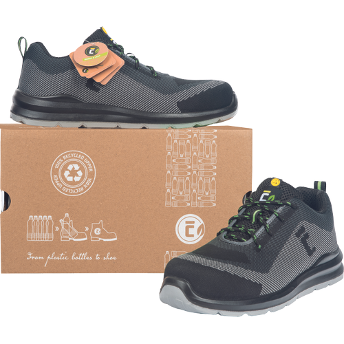 Lehká a pohodlná bezpečnostní obuv s certifikátem GRS (Global recycled standard). Bezpečnostní boty Zurrum ECO S1PS jsou alternativou oblíbeného modelu Zurrum S1P, částečně vyrobenou z recyklovaných materiálů. Celková podíl obsaženého recyklátu na hmotnosti je 23 % (120 g z celkových 521 g u velikosti 42). Textilní svršek je ze 100 % vyroben z recyklovaného polyesteru, vkládací stélka obsahuje 90 % recyklátu a kompozitní protipropichová stélka je vyrobena s hmotnostním podílem 60 % recyklátu na její kompozitní struktuře. Kompozitní bezpečnostní tužinka. Pohodlná PU/PU podešev s dvojitou hustotou. Antistatická, ESD obuv. Indoorová prodyšná obuv.