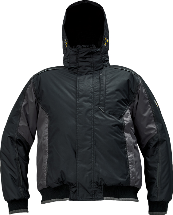 pánská zimní pilotka s odepínací kapucí, 1 náprsní kapsa na zip, 2 boční kapsy na zip, 2 vnitřní kapsy na zip, hlavní zip krytý légou se zapínáním na suchý zip, stahovací šňůrka v kapuci, fleece v límci a kapuci, elastické žebrované náplety na rukávech a spodním dílu, možnost strojního vyšívání, reflektivní prvky v barevném odstínu